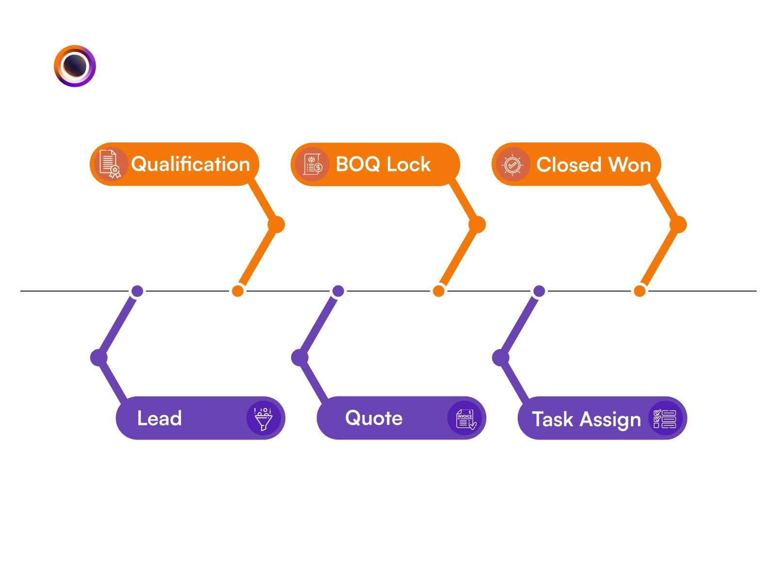 Lead → Qualification → Quote → BOQ Lock → Task Assign → Closed Won